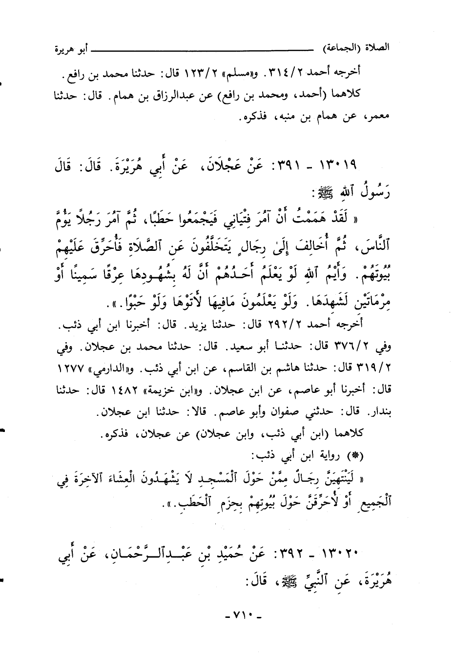 ١٣٠٢٠ - عَنْ حُمَيْدِ بْنِ عَبْدِ الرَّحْمَانِ، عَنْ أَبِي هُرَيْرَةَ، عَنِ النَّبِيِّ صلى الله عليه وسلم، قَالَ: