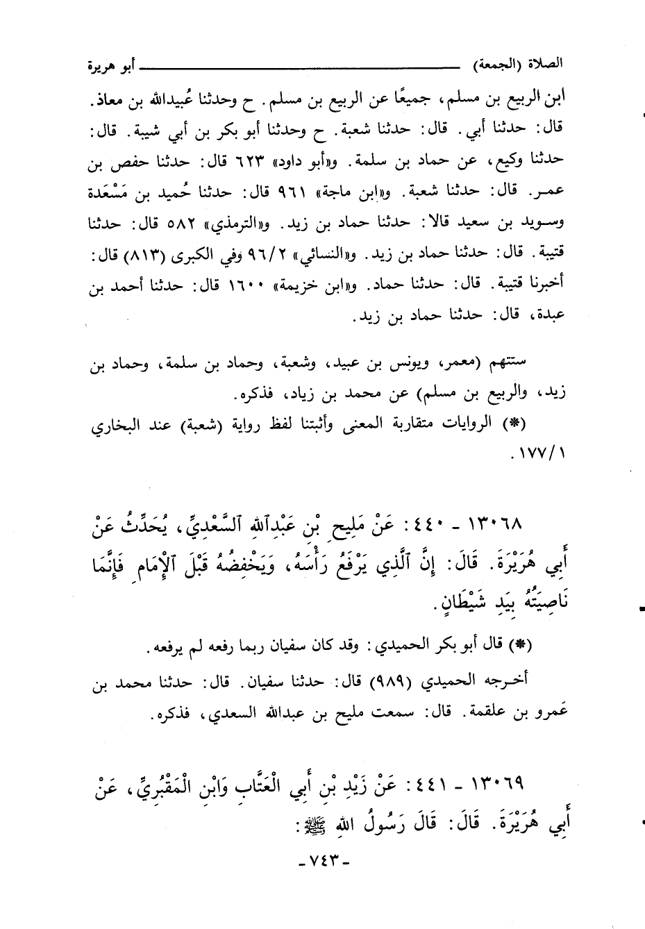 بن الربيع بن مسلم، جميعًا عن الربيع بن مسلم (ح) وحدَّثنا عبيد الله بن معاذ، حدَّثنا أبي، حدَّثنا شعبة (ح) وحدَّثنا أبو بكر بن أبي شيبة، حدَّثنا وكيع، عن حماد بن سلمة. و ((أبو داود))]] ٦٢٣ قال: حدَّثنا حفص بن عمر، حدَّثنا شعبة. و ((ابن ماجة))]] ٩٦١ قال: حدَّثنا حُميد بن مَسْعَدة، وسويد بن سعيد، قالا: حدَّثنا حماد بن زيد. و ((التِّرمِذي))]] ٥٨٢ قال: حدَّثنا قتيبة، حدَّثنا حماد بن زيد. و ((النَّسائي))]] ٢/ ٩٦، وفي ((الكبرى))]] ٩٠٤ قال: أَخْبَرنا قتيبة، قال: حدَّثنا حماد. و ((ابن خزيمة))]] ١٦٠٠ قال: حدَّثنا أحمد بن عبدة،