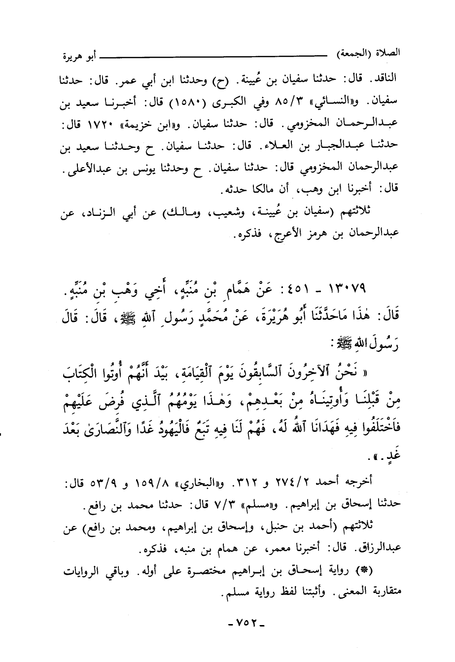 ثلاثتهم (سفيان بن عُيينة، وشعيب، ومالك) عن أبي الزناد، عن عبد الرحمن بن هرمز الأعرج، فذكره.