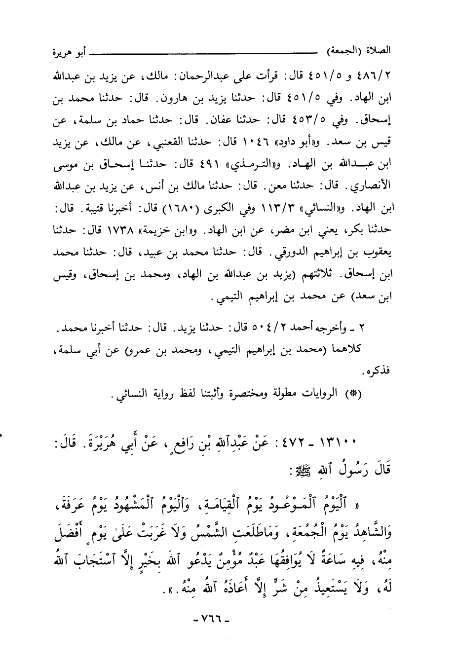 • وأخرجه ابن خزيمة (١٧٢٩) قال: قد اختلفوا في هذه اللفظة في قوله: فيه خلق آدم، إلى قوله: وفيه تقوم الساعة، أهو عن أبي هُرَيرة، عن النبي صلى الله عليه وسلم، أو عن أبي هُرَيرة، عن كعب الأحبار، قد خرجت هذه الأخبار في كتاب ((الكبير))]]، من جعل هذا الكلام رواية من أبي هُرَيرة، عن النبي صلى الله عليه وسلم، ومن جعله عن كعب الأحبار، والقلب إلى رواية من جعل هذا الكلام عن أبي هُرَيرة، عن كعب أميل، لأن محمد بن يحيى حدثنا، قال: حدثنا محمد بن يوسف، حدثنا الأوزاعي، عن يحيى، عن أبي سلمة، عن أبي هُرَيرة؛