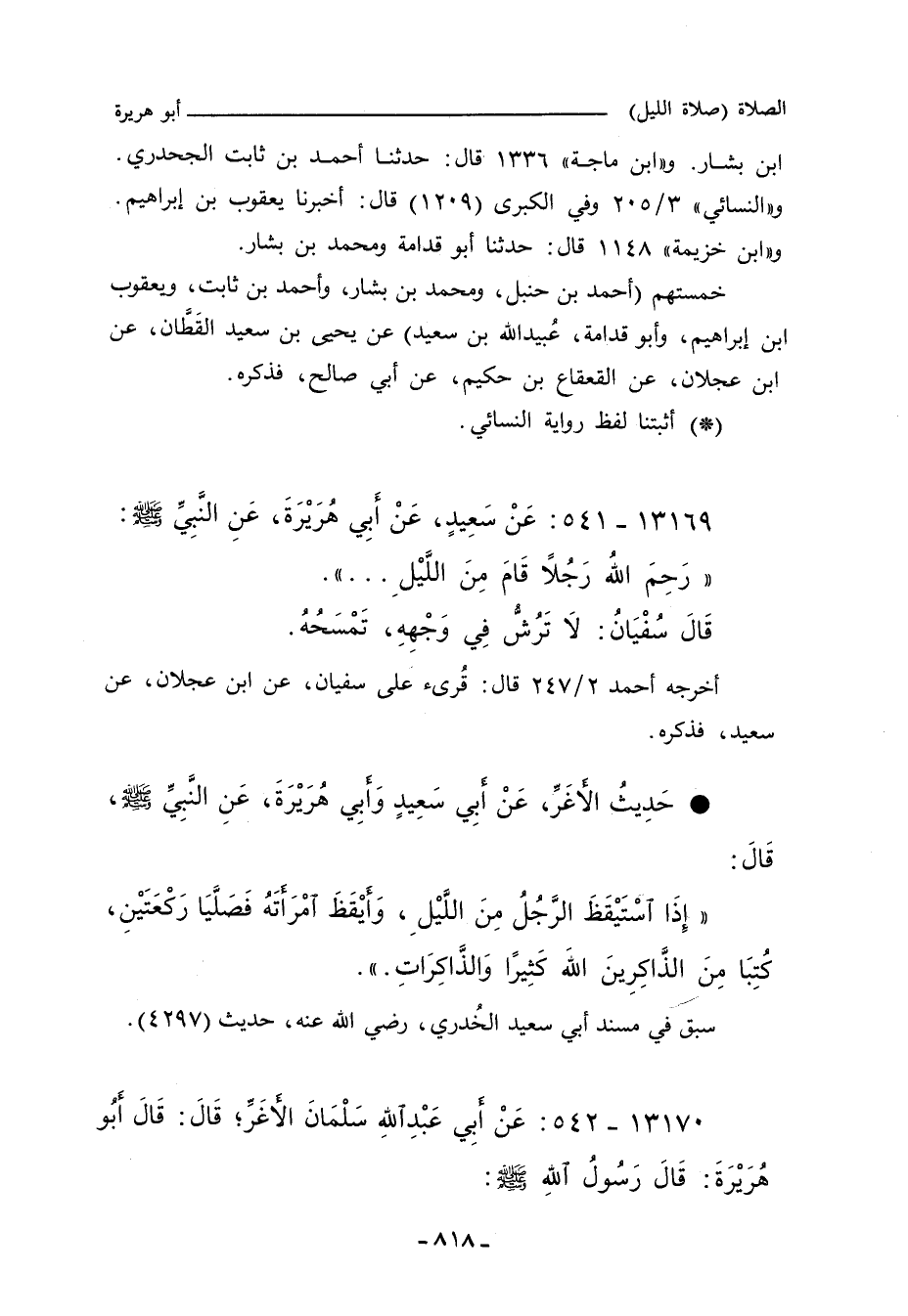 (رَحِمَ اللَّهُ رَجُلاً قَامَ مِنَ اللَّيْلِ .... ) ".