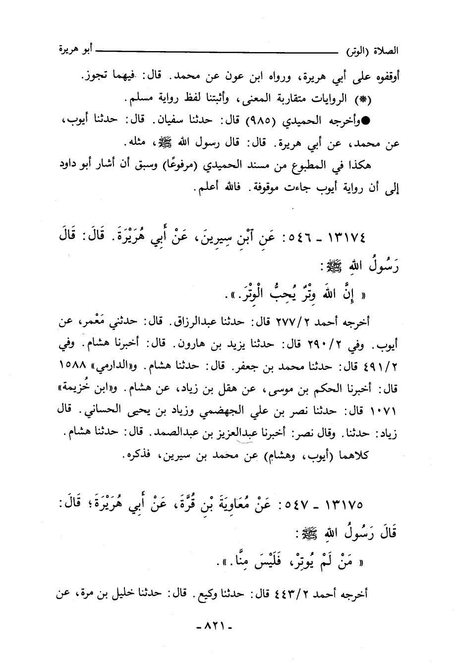 ١٣١٧٤ - عَنْ مُحَمَّدِ بْنِ سِيرِينَ، عَنْ أَبِي هُرَيْرَةَ، عَنِ النَّبِيِّ صلى الله عليه وسلم، قَالَ:
