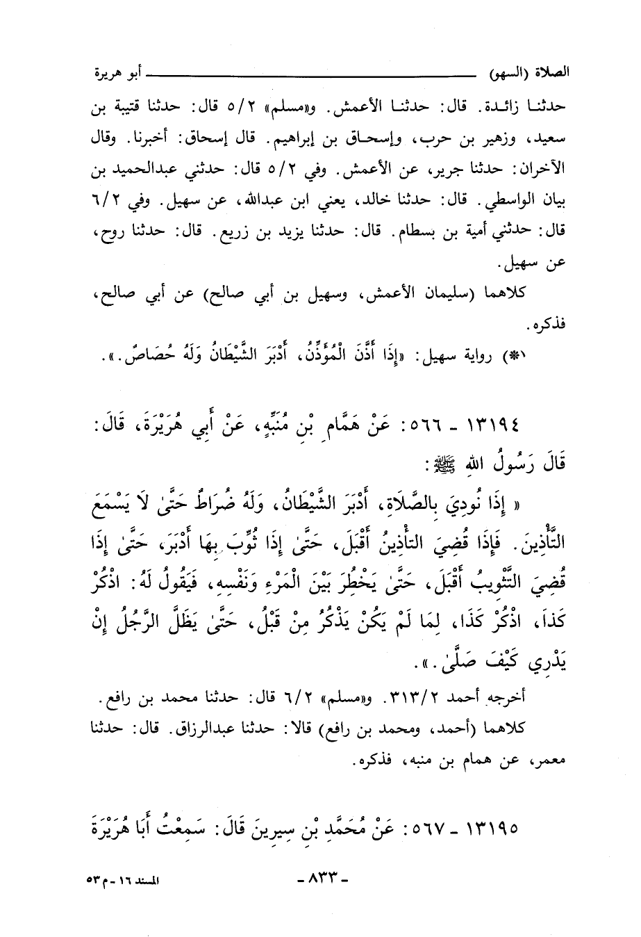 حدَّثنا زائدة، حدَّثنا الأعمش. و ((مسلم))]] ٧٨٥ قال: حدَّثنا قتيبة بن سعيد، وزهير بن حرب، وإسحاق بن إبراهيم، قال إسحاق: أَخْبَرنا، وقال الآخران: حدَّثنا جرير، عن الأعمش. وفي (٧٨٦) قال: حدثني عبد الحميد بن بيان الواسطي، حدَّثنا خالد، يعني ابن عبد الله، عن سهيل. وفي (٧٨٧) قال: حدثي أمية بن بسطام، حدَّثنا يزيد، يعني ابن زريع، حدَّثنا روح، عن سهيل.