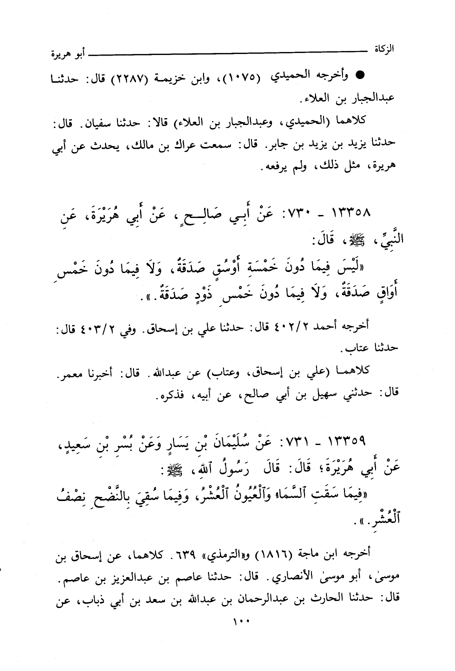 كلاهما (الحميدي، وعبد الجبار بن العلاء) قالا: حدثنا سفيان، قال: حدَّثنا يزيد بن يزيد بن جابر، قَالَ: سَمِعْتُ عِرَاكَ بْنَ مَالِكٍ يَقُولُ: سَمِعْتُ أَبَا هُرَيْرَةَ - وَلَمْ يَرْفَعْهُ يَزِيدُ - قَالَ: