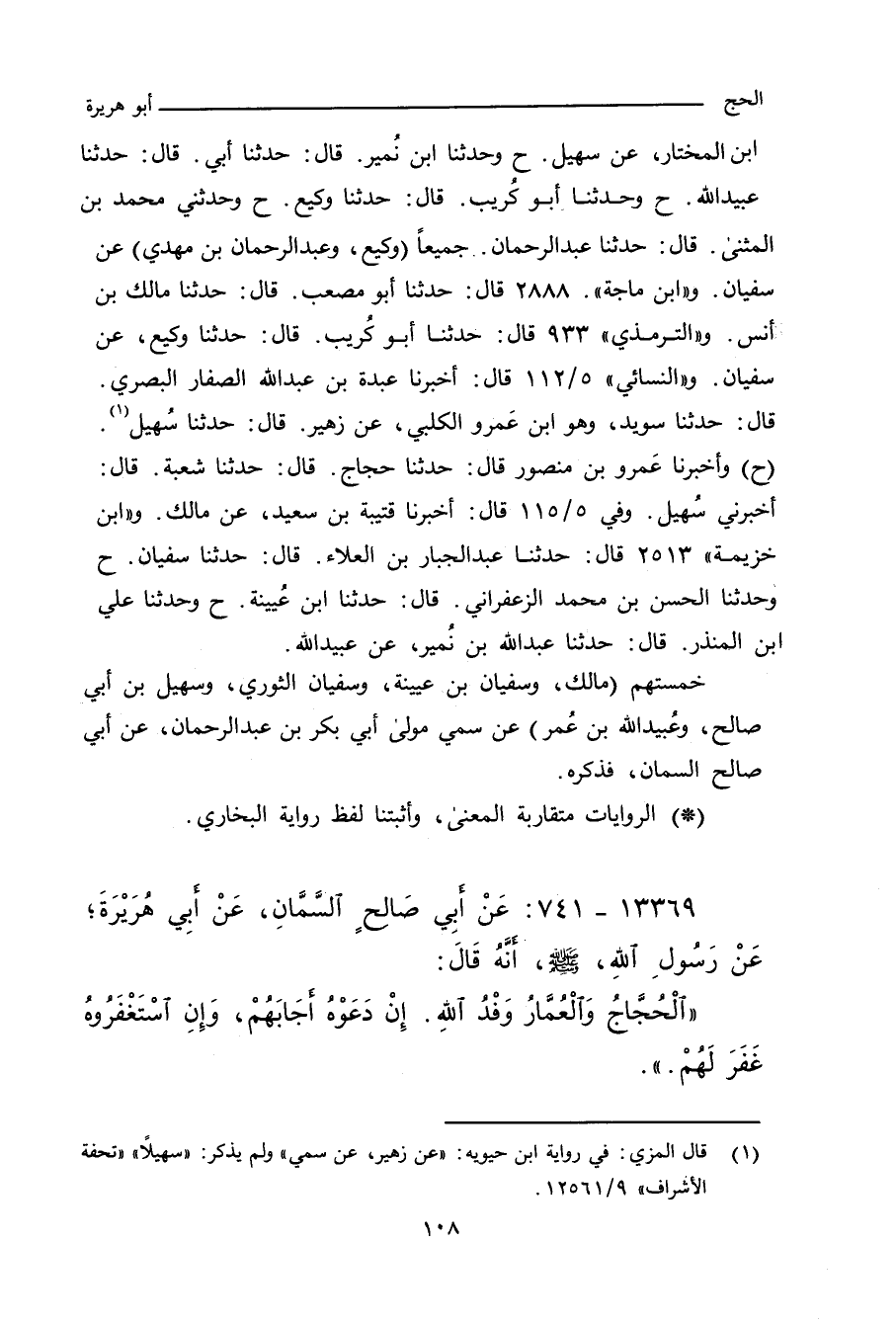 ستتهم (مالك، وسفيان الثوري، وعبد الله بن عمر، وسفيان بن عيينة، وسهيل بن أبي صالح، وعبيد الله بن عُمر) عن سمي، مولى أبي بكر بن عبد الرحمن، عن أبي صالح السمان، فذكره.