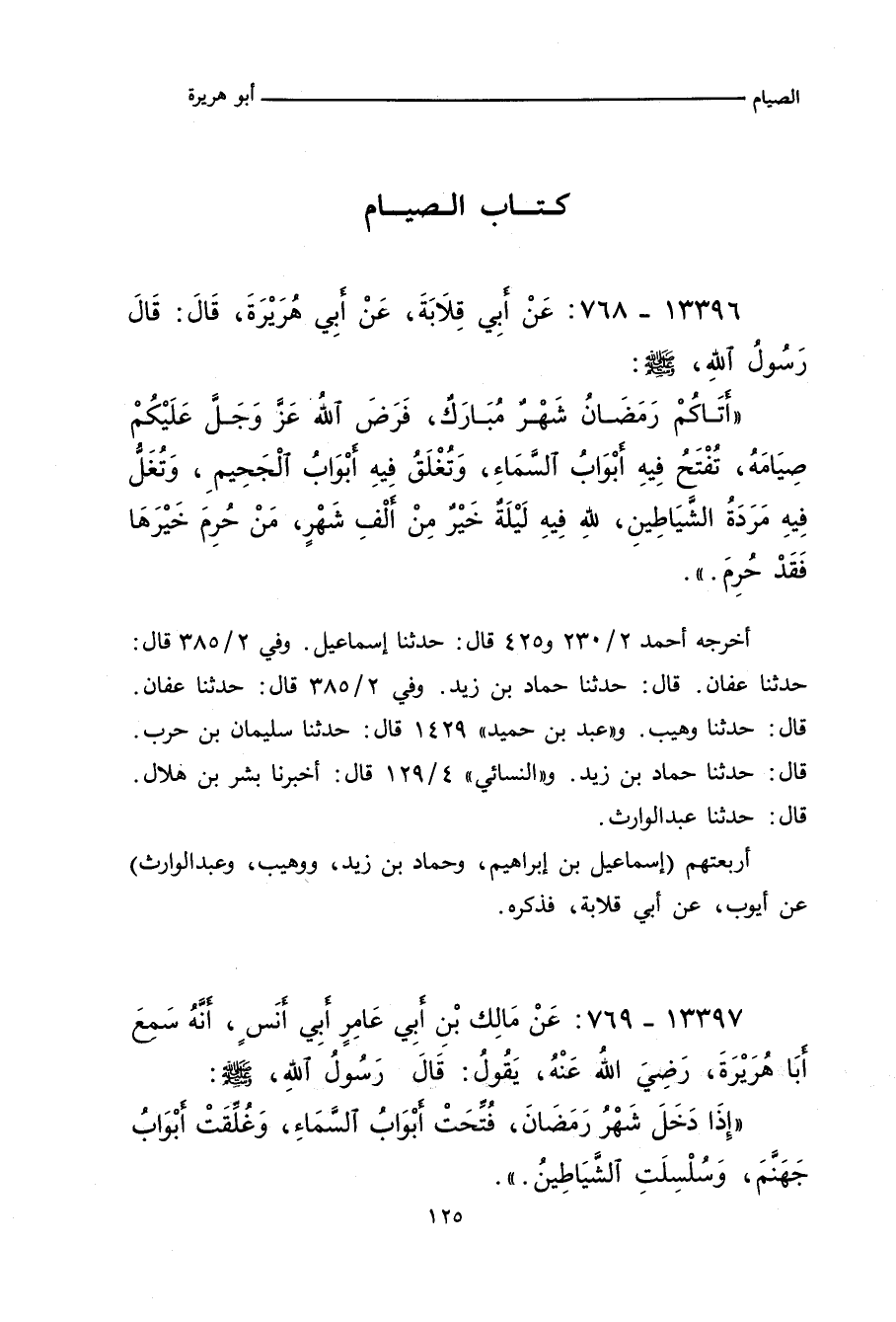 ـ وفي رواية: أَتَاكُمْ رَمَضَانُ شَهْرٌ مُبَارَكٌ، فَرَضَ اللهُ، عَزَّ وَجَلَّ، عَلَيْكُمْ صِيَامَهُ، تُفْتَحُ فِيهِ أَبْوَابُ السَّمَاءِ، وَتُغْلَقُ فِيهِ أَبْوَابُ الْجَحِيمِ، وَتُغَلُّ فِيهِ مَرَدَةُ الشَّيَاطِينِ، للهِ فِيهِ لَيْلَةٌ خَيْرٌ مِنْ أَلْفِ شَهْرٍ، مَنْ حُرِمَ خَيْرَهَا فَقَدْ حُرِمَ.