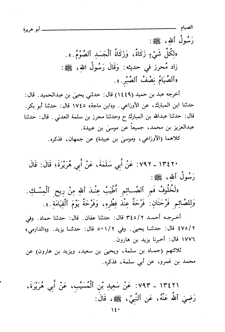 ١٣٤٢٠ - عَنْ أَبِي سَلَمَةَ، عَنْ أَبِي هُرَيْرَةَ، قَالَ: قَالَ رَسُولُ اللهِ صلى الله عليه وسلم: