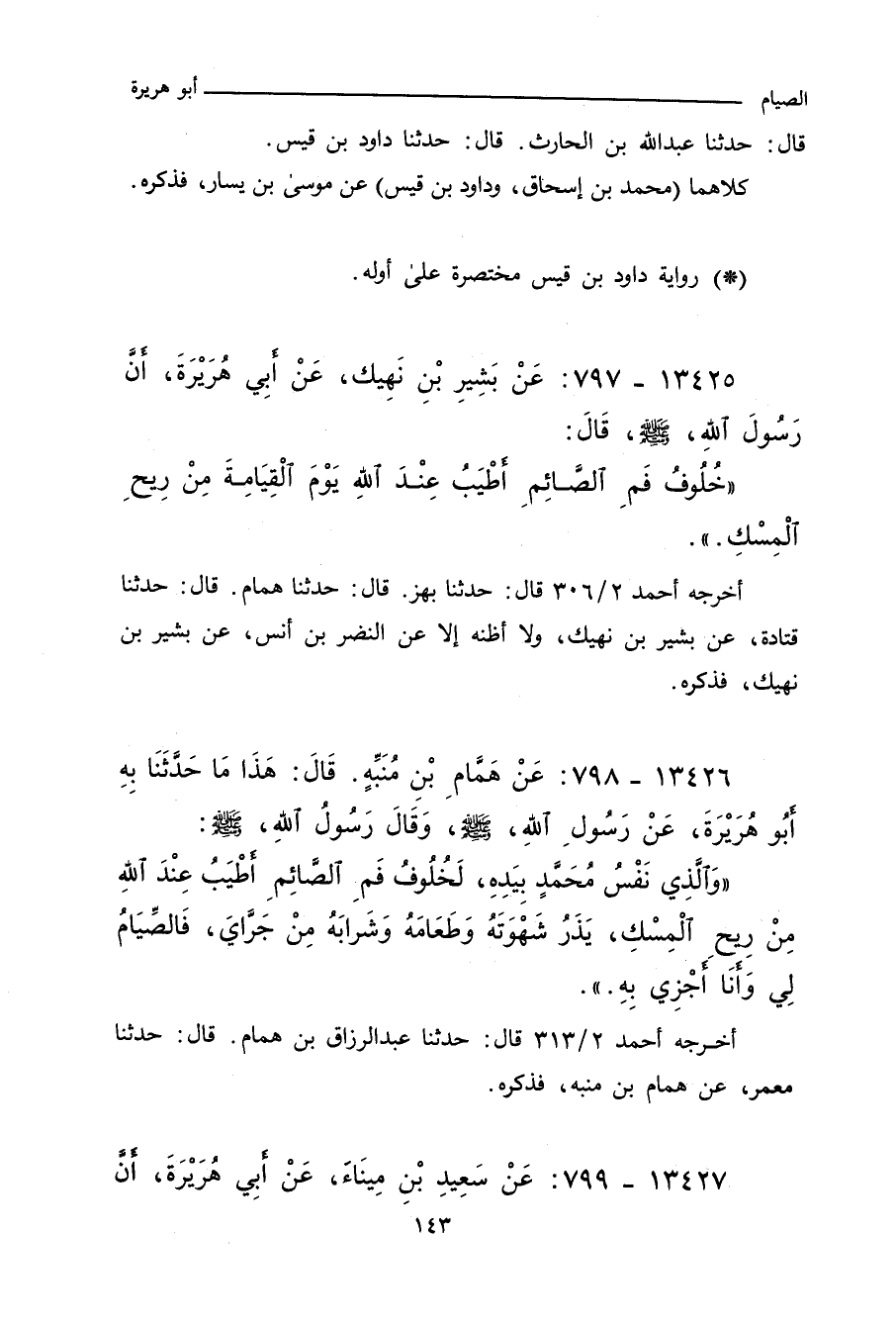 ١٣٤٢٦ - عَنْ هَمَّامِ بْنِ مُنَبِّهٍ، قَالَ: هَذَا مَا حَدَّثَنَا بِهِ أَبُو هُرَيْرَةَ، عَنْ رَسُولِ اللهِ صلى الله عليه وسلم، وَقَالَ رَسُولُ اللهِ صلى الله عليه وسلم: