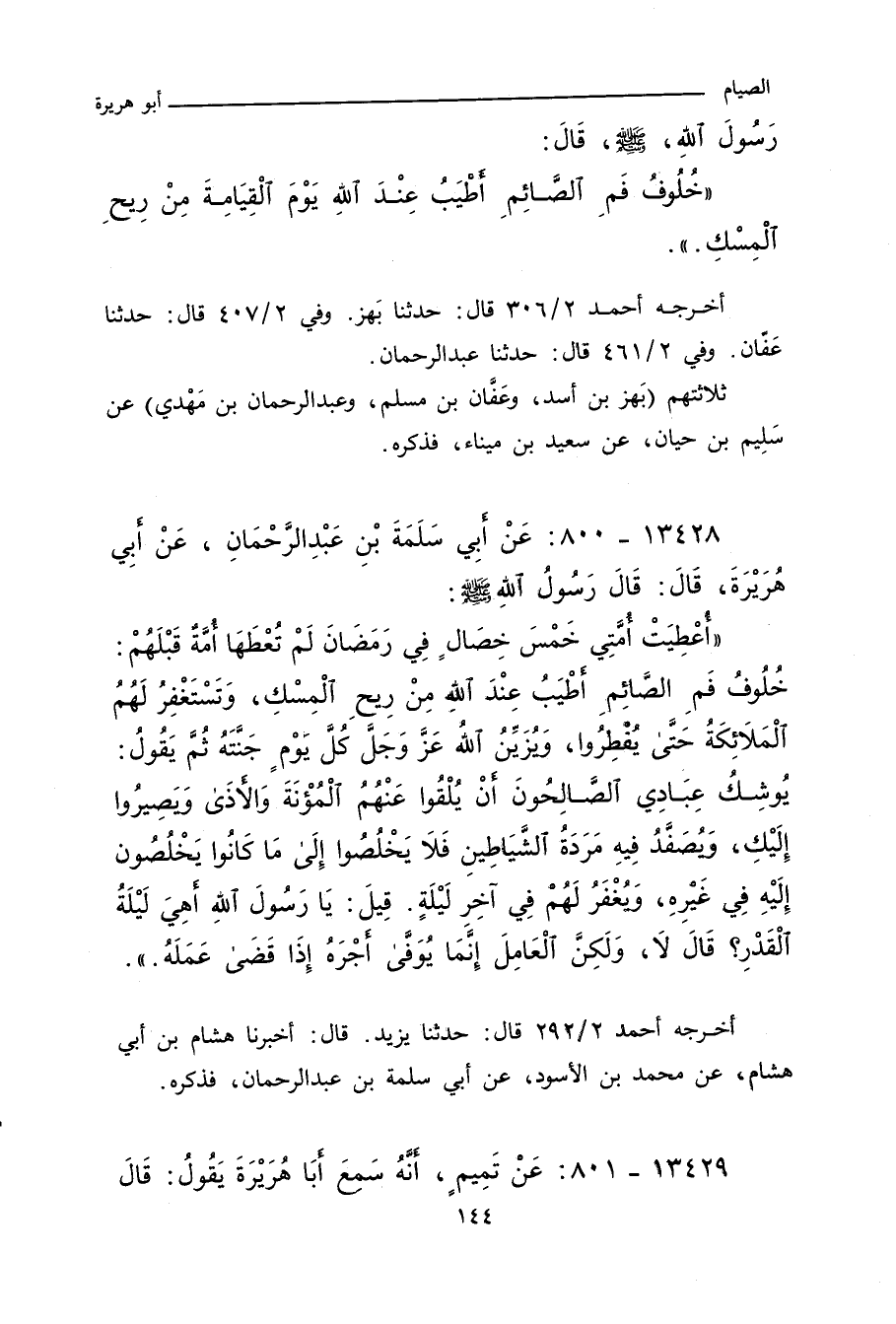 ١٣٤٢٨ - عَنْ أَبِي سَلَمَةَ بْنِ عَبْدِ الرَّحْمَانِ، عَنْ أَبِي هُرَيْرَةَ، قَالَ: قَالَ رَسُولُ اللهِ صلى الله عليه وسلم: