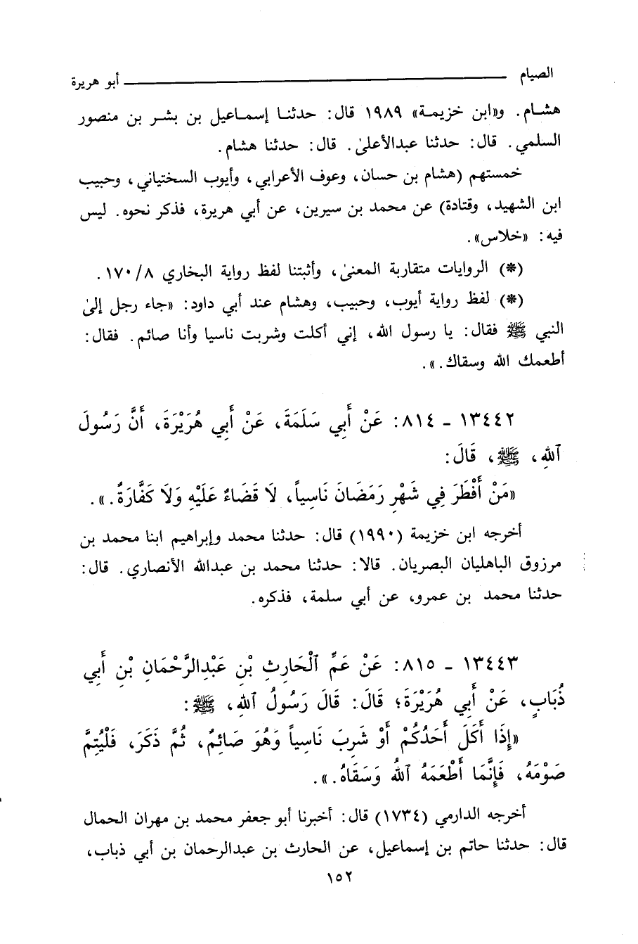 وقال إبراهيم في حديثه: مَنْ أَكَلَ أَوْ شَرِبَ فِي رَمَضَانَ نَاسِيًا فَلَا قَضَاءَ عَلَيْهِ وَلَا كَفَّارَةٌ