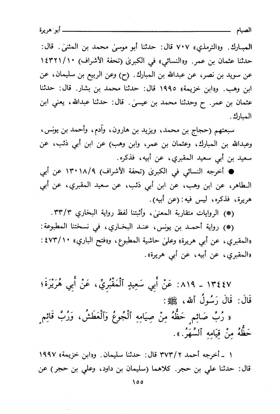 - أخرجه النسائي في "الكبرى" ٣٢٣٥ قال: أخبرنا أحمد بن عَمْرو بن السرح، قال: حَدَّثنا ابن وَهْب. و"ابن حِبَّان" ٣٤٨٠ قال: أخبرنا إسحاق بن إبراهيم بن إسماعيل، ببست، حَدَّثنا سَعِيد بن يعقوب الطالقاني، حَدَّثنا ابن المبارك.