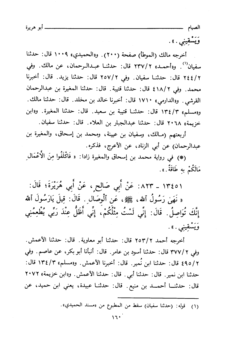 أخرجه مالك "الموطأ" ٢٠٠. والحُمَيدي (١٠٠٩) قال: حدَّثنا سفيان. و"أحمد" ٢/ ٢٣٧ (٧٢٢٨) قال: حدَّثنا عبد الرحمن، عن مالك. وفي ٢/ ٢٤٤ (٧٣٢٦) قال: حدَّثنا سفيان. وفي ٢/ ٢٥٧ (٧٤٨٦) قال: حدَّثنا يزيد، أخبرنا محمد. وفي ٢/ ٤١٨ (٩٤٠٦) قال: حدَّثنا قتيبة، قال: حدَّثنا المغيرة بن عبد الرحمن القرشي. و"الدارِمِي" ١٧٠٣ قال: أخبرنا خالد بن مخلد، حدَّثنا مالك. و"مسلم" ٢٥٣٦ قال: حدَّثنا قتيبة بن سعيد، حدَّثنا المغيرة. و"ابن خزيمة" ٢٠٦٨ قال: حدَّثنا عبد الجبار بن العلاء، حدَّثنا سفيان. و"ابن حِبَّان" ٣٥٧٦ قال: أخبرنا البجيرى، حَدَّثنا عَمْرو بن عثمان، حَدَّثنا أبى، عن شُعَيب بن أبى حَمزة.