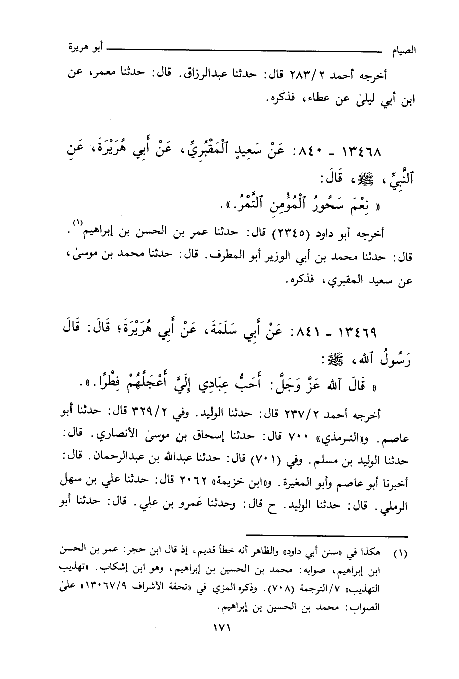 أخرجه أبو داود (٢٣٤٥) قال: حدَّثنا عمر بن الحسن بن إبراهيم، حدَّثنا محمد بن أبي الوزير، أبو المطرف. و"ابن حِبَّان" ٣٤٧٥ قال: أخبرنا أبو يَعْلَى، قال: حَدَّثنا مُحمد بن أبي بكر المقدمي، قال: حَدَّثنا إبراهيم بن أبي الوزير.