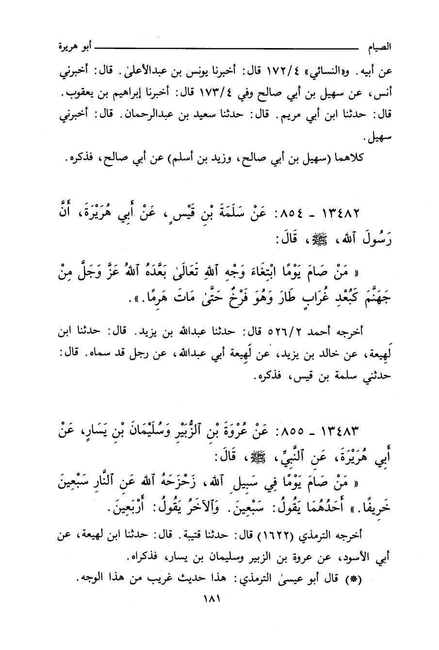 ١٣٤٨٢ - عَنْ سَلَمَةَ بْنِ قَيْس، عَنْ أَبِي هُرَيْرَةَ، أَنَّ رَسُولَ اللهِ صلى الله عليه وسلم قَالَ:
