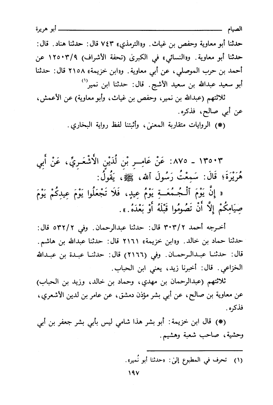 ثلاثتهم (عبد الرحمن بن مهدي، وحماد بن خالد، وزيد بن الحباب) عن معاوية بن صالح، عن أبي بشر، مؤذن دمشق، عن عامر بن لُدين الأشعري، فذكره.