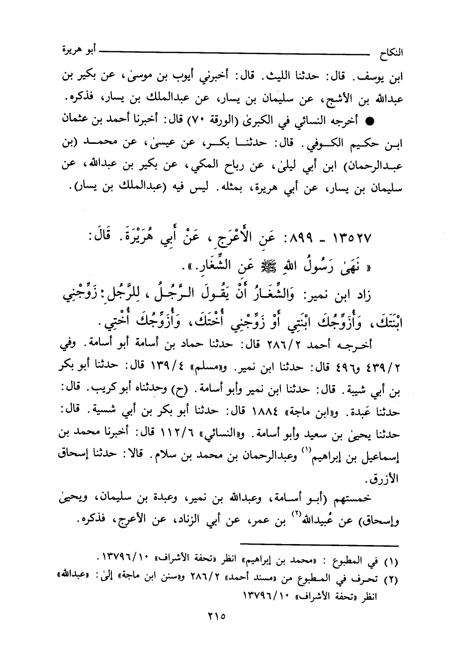 وَزَادَ ابْنُ نُمَيْرٍ: الشِّغَارُ أَنْ يَقُولَ الرَّجُلُ: زَوِّجْنِي ابْنَتَكَ حَتَّى أُزَوِّجَك ابْنَتِي، أَوْ زَوِّجْنِي أُخْتَكَ حَتَّى أُزَوِّجَكَ أُخْتِي.