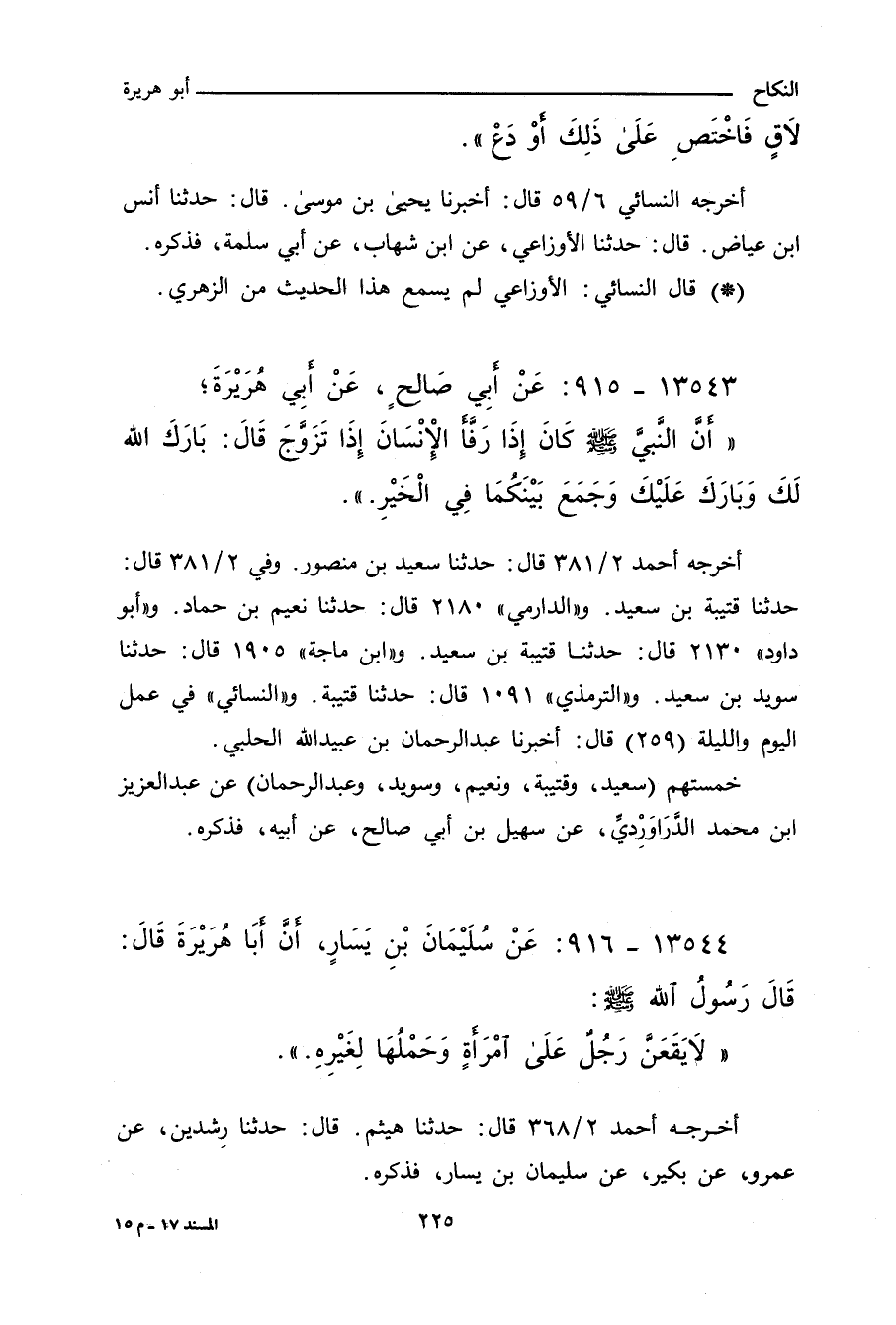 ـ قال أبو عَبْد الرَّحْمان النسائي: الأوزاعي لم يسمع هذا الحديث من الزهري، وهذا حديثٌ صحيحٌ قد رواه يُونُس عن الزُّهْري.