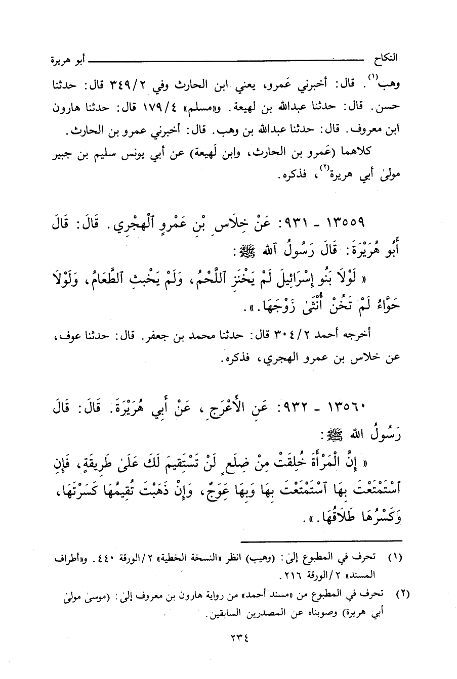 وهب، أخبرني عَمْرو، يعني ابن الحارث. وفي ٢/ ٣٤٩ (٨٥٨١) قال: حدَّثنا حسن، حدَّثنا عبد الله بن لَهِيعَة. و"مسلم" ٣٦٤١ قال: حدَّثنا هارون بن معروف، حدَّثنا عبد الله بن وهب، أخبرني عمرو بن الحارث.