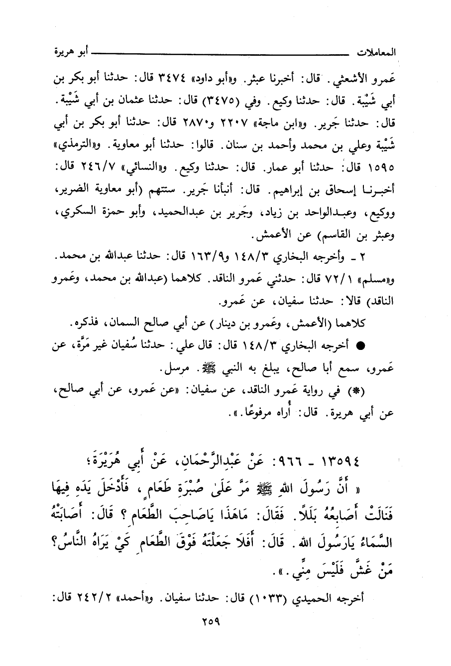 عمرو الأشعثي، أخبرنا عبثر. و"أبو داود" ٣٤٧٤ قال: حدَّثنا أبو بكر بن أبي شَيْبة، حدَّثنا وكيع. وفي (٣٤٧٥) قال: حدَّثنا عثمان بن أبي شَيْبة، حدَّثنا جَرير. و"ابن ماجة" ٢٢٠٧ و ٢٨٧٠ قال: حدَّثنا أبو بكر بن أبي شيْبة، وعلي بن محمد، وأحمد بن سنان، قالوا: حدثنا أبو معاوية. و"التِّرمِذي" ١٥٩٥ قال: حدَّثنا أبو عمار، حدَّثنا وكيع. و"النَّسائي" ٧/ ٢٤٦، وفي "الكبرى" ٥٩٧٥ و ٦٠١١ قال: أخبرنا إسحاق بن إبراهيم، قال: أنبأنا جَرير. ستتهم (أبو معاوية الضرير، ووكيع، وعبد الواحد بن زياد، وجَرير بن عبد الحميد، وأبو حمزة السكري، وعبثر بن القاسم) عن الأعمش.