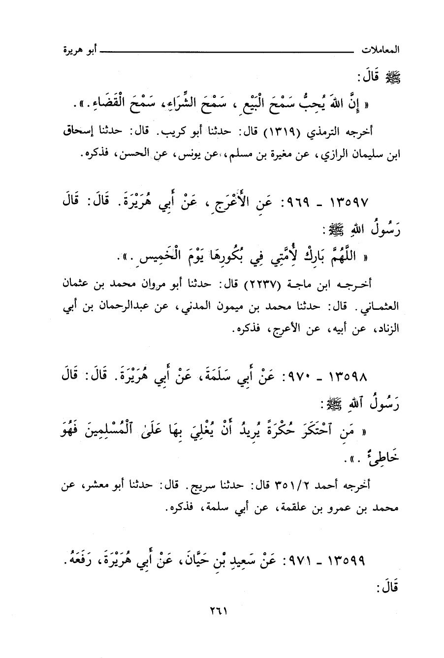 ١٣٥٩٧ - عَنِ الأَعْرَجِ، عَنْ أَبِي هُرَيْرَةَ، قَالَ: قَالَ رَسُولُ اللهِ صلى الله عليه وسلم: