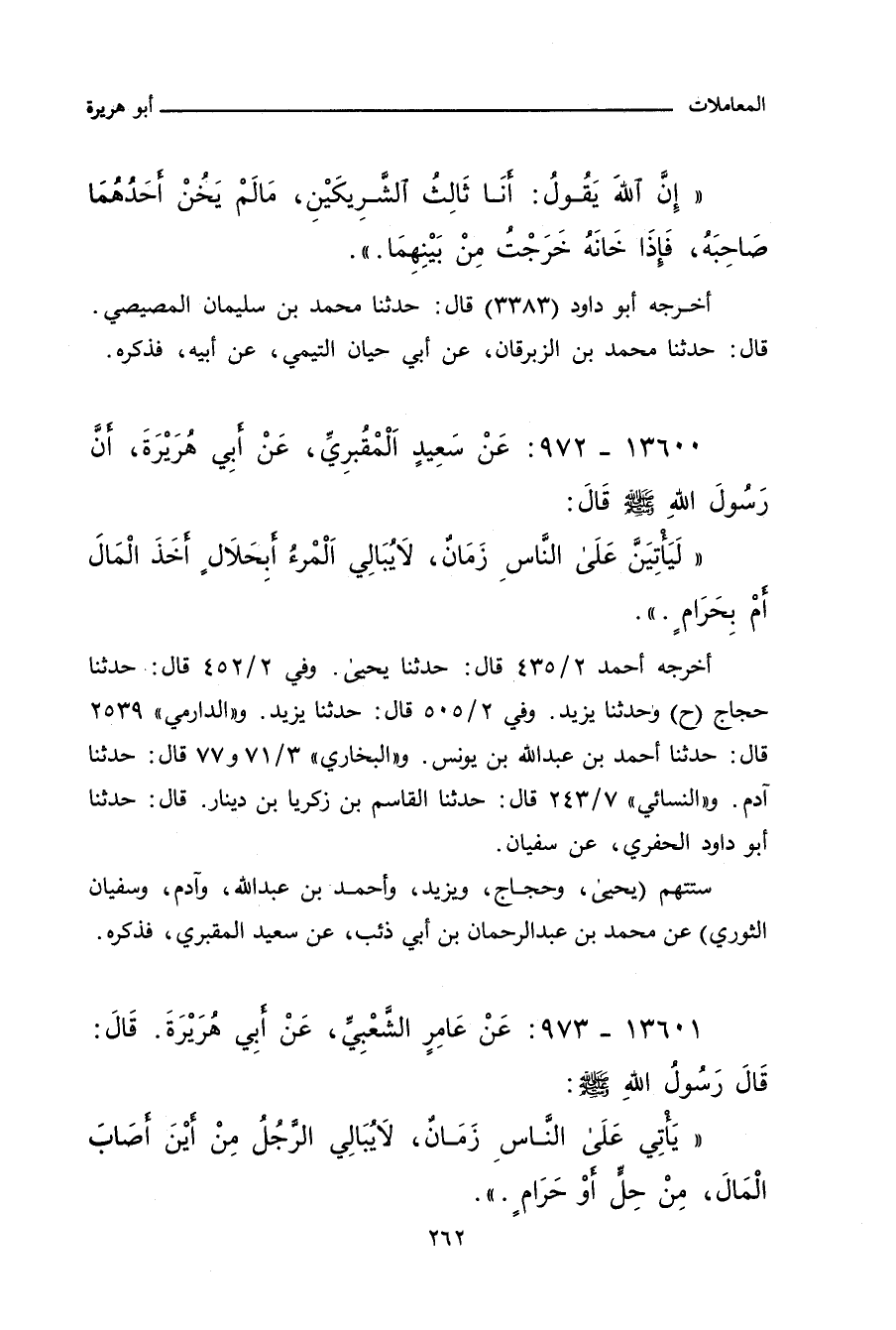 لَيَأْتِيَنَّ عَلَى النَّاسِ زَمَانٌ، لَا يُبَالِي الْمَرْءُ بِمَا أَخَذَ الْمَالَ بِحَلَالٍ أَوْ بِحَرَامٍ.
