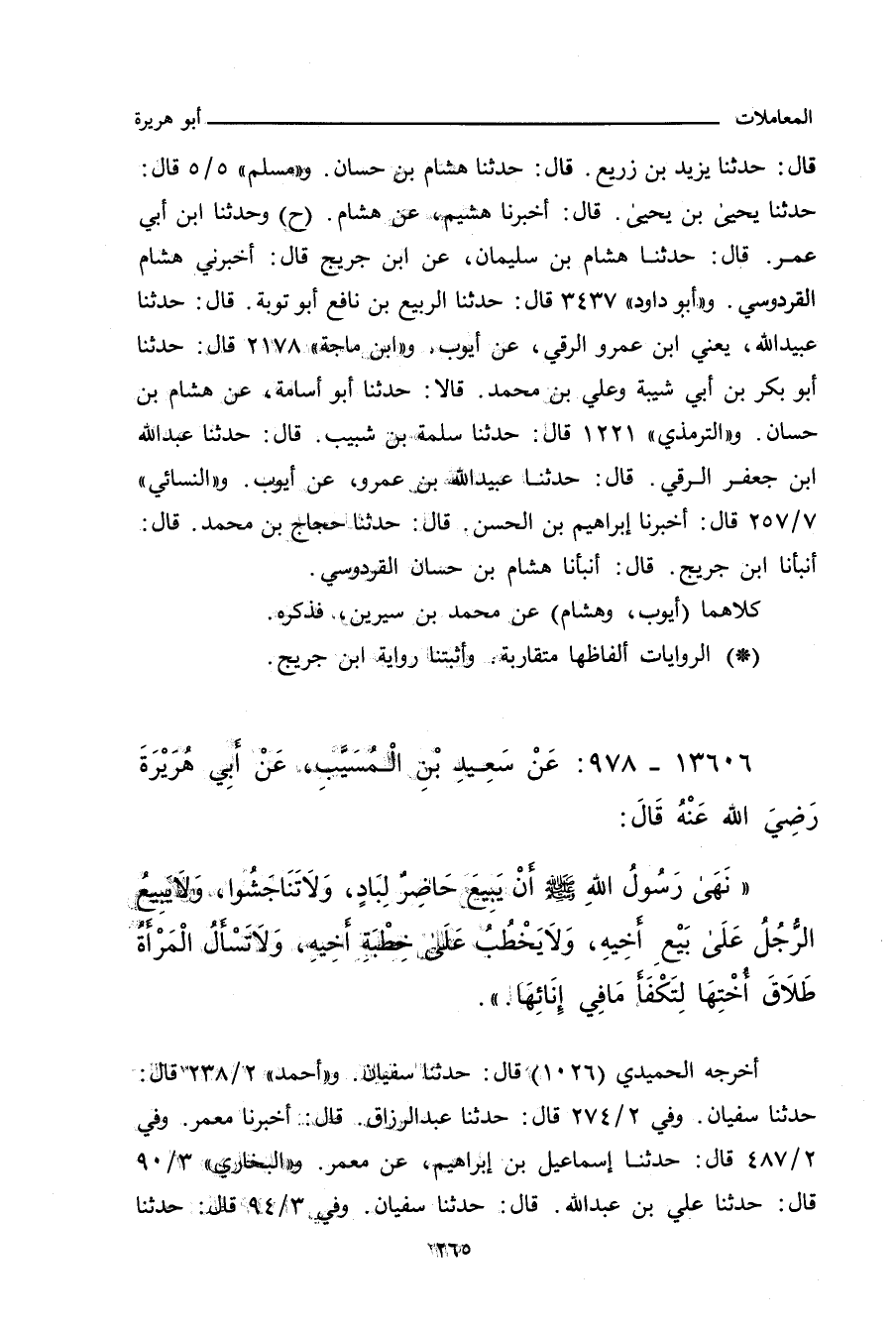 ١٣٦٠٦ - عَنْ سَعِيدِ بْنِ الْمُسَيَّبِ، عَنْ أَبِي هُرَيْرَةَ، قَالَ: قَالَ رَسُولُ اللهِ صلى الله عليه وسلم:
