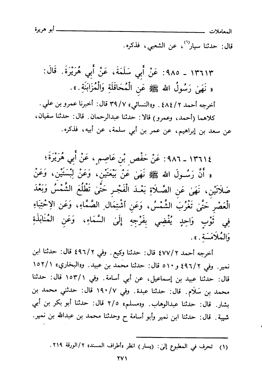 ـ وفي رواية: عَنِ النَّبِيِّ صلى الله عليه وسلم، أَنَّهُ نَهَى عَنْ بَيْعَتَيْنِ، أَمَّا الْبَيْعَتَانِ: فَالْمُنَابَذَةُ، وَالْمُلَامَسَةُ.