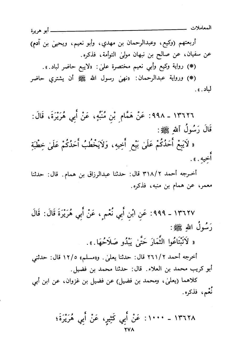 ١٣٦٢٦ - عَنْ هَمَّامِ بْنِ مُنَبِّهٍ، عَنْ أَبِي هُرَيْرَةَ، قَالَ: قَالَ رَسُولُ اللهِ صلى الله عليه وسلم: