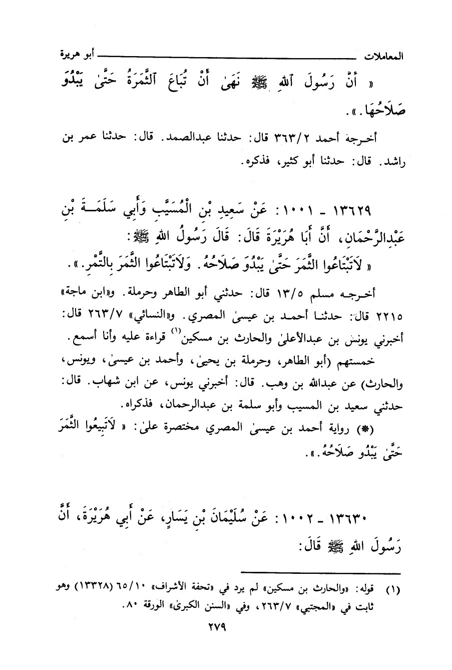ـ لفظ أحمد بن عيسى: لَا تَبِيعُوا الثَّمَرَ حَتَّى يَبْدُوَ صَلَاحُهُ.