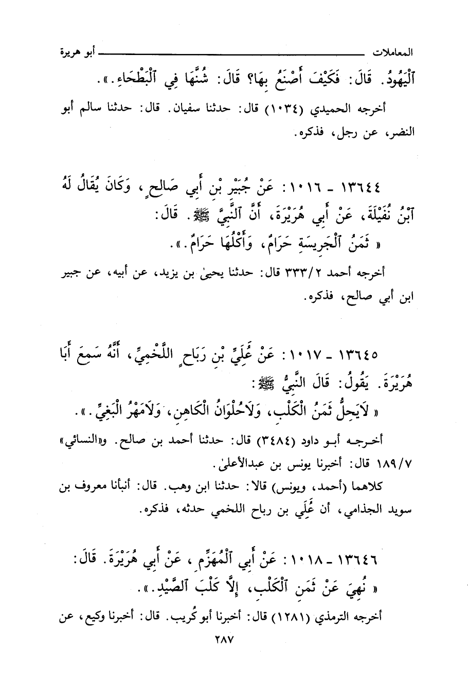 - أخرجه ابن أبي شَيْبَة ٦/ ٢٤٤ (٢٠٩٠٣) قال: حَدَّثنا وَكِيع، عن حمَّاد بن سَلَمة، عن أبي الزُّبَيْر، عن جابر، وعن أبي المهزم، عن أبي هُرَيرة؛ أنهما كرها ثمن الكلب، إلَاّ كلب صيد.