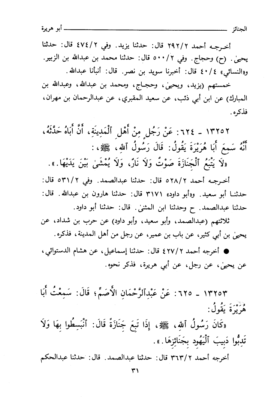- وفي رواية: لَا تُتْبَعُ الْجَنَازَةُ بِصَوْتٍ، وَلَا يُمْشَى بَيْنَ يَدَيْهَا بِنَارٍ.