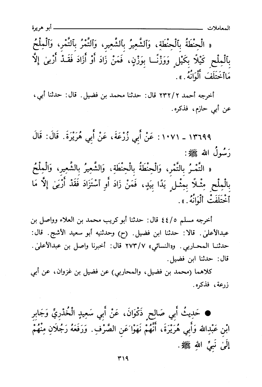 - حَدِيثُ ذَكْوَانَ أَبِي صَالِحٍ، عَنْ أَبِي سَعِيدٍ الْخُدْرِيِّ، وَجَابِرِ بْنِ عَبْدِ اللهِ، وَأَبِي هُرَيْرَةَ، أَنَّهُمْ نُهُوا عَنِ الصَّرْفِ، وَرَفَعَهُ رَجُلَانِ مِنْهُمْ إِلَى نَبِيِّ اللهِ صلى الله عليه وسلم.