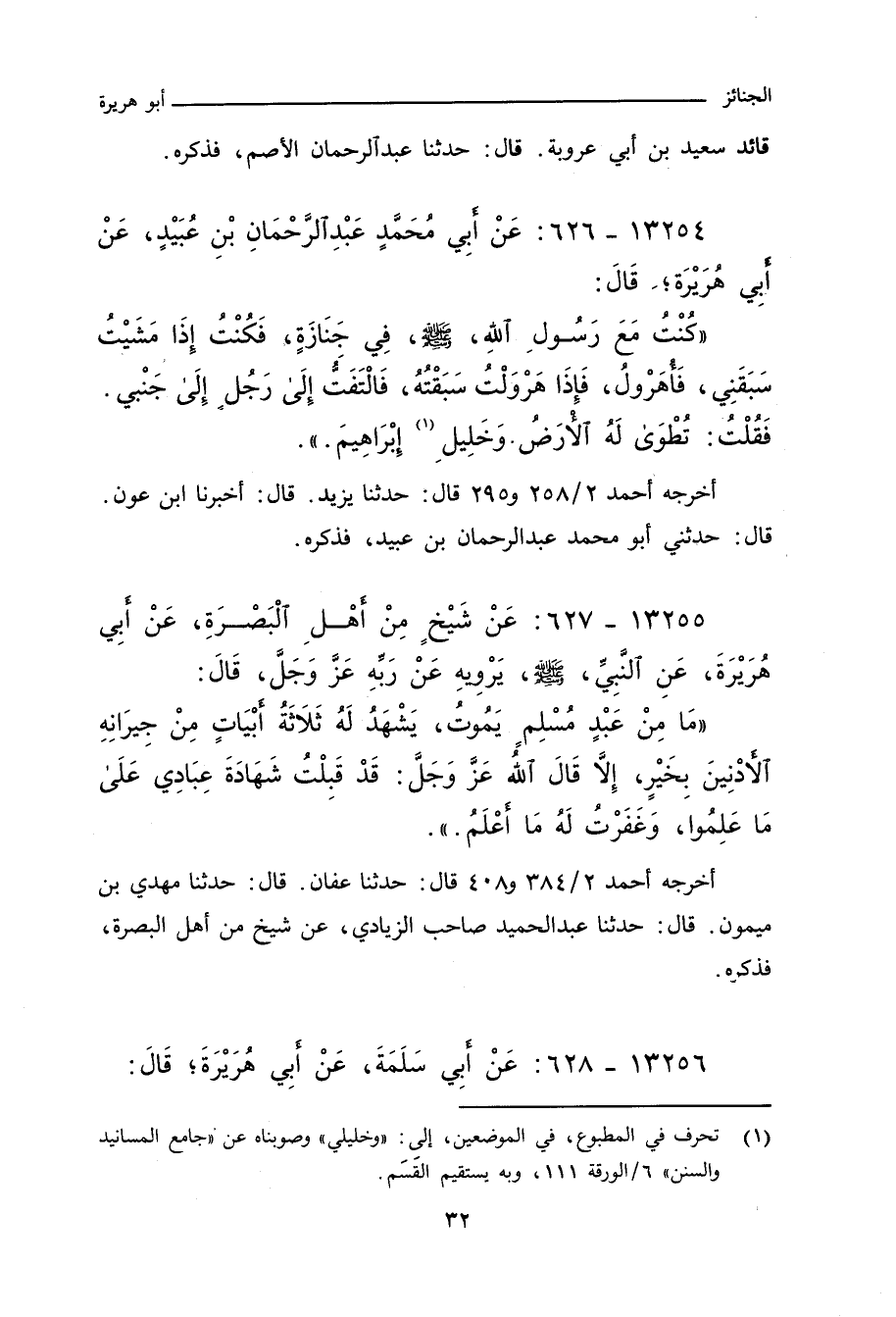 ١٣٢٥٤ - عَنْ أَبِي مُحَمَّدٍ، عَبْدِ الرَّحْمَانِ بْنِ عُبَيْدٍ، عَنْ أَبِي هُرَيْرَةَ، قَالَ: