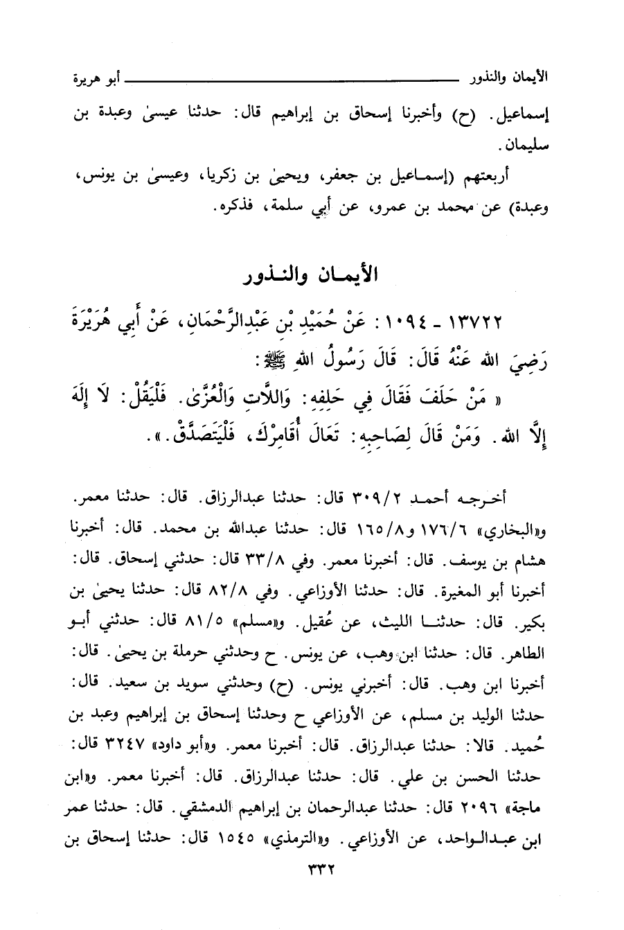 ١٣٧٢٢ - عَنْ حُمَيْدِ بْنِ عَبْدِ الرَّحْمَانِ، عَنْ أَبِي هُرَيْرَةَ، رَضِيَ اللهُ عَنْهُ، قَالَ رَسُولُ اللهِ صلى الله عليه وسلم: