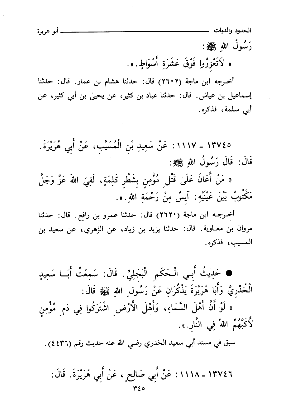 ١٣٧٤٥ - عَنْ سَعِيدِ بْنِ الْمُسَيَّبِ، عَنْ أَبِي هُرَيْرَةَ، قَالَ: قَالَ رَسُولُ اللهِ صلى الله عليه وسلم: