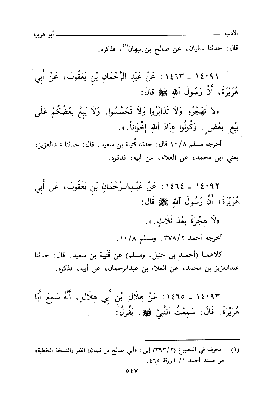 ١٤٠٩٢ - عَنْ عَبْدِ الرَّحْمَانِ بْنِ يَعْقُوبَ، عَنْ أَبِي هُرَيْرَةَ، أَنَّ رَسُولَ اللهِ صلى الله عليه وسلم قَالَ:
