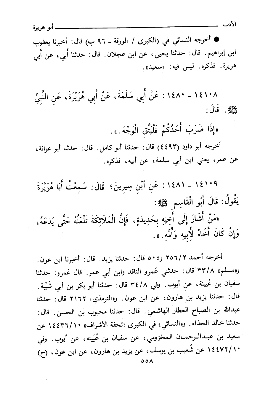 ١٤١٠٨ - عَنْ أَبِي سَلَمَةَ، عَنْ أَبِي هُرَيْرَةَ، عَنِ النَّبِيِّ صلى الله عليه وسلم، قَالَ: