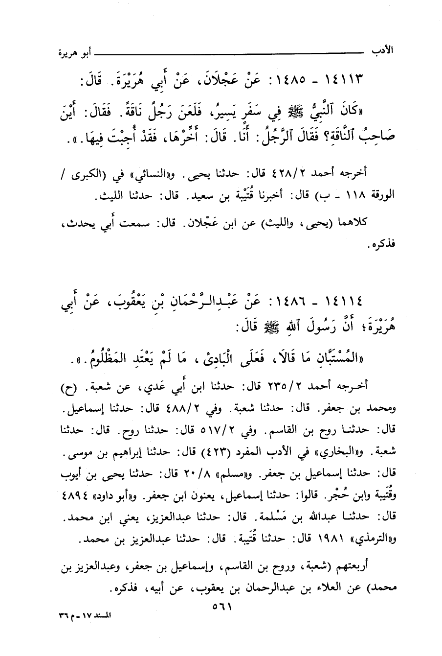 ١٤١١٤ - عَنْ عَبْدِ الرَّحْمَانِ بْنِ يَعْقُوبَ، عَنْ أَبِي هُرَيْرَةَ، قَالَ: قَالَ رَسُولُ اللهِ صلى الله عليه وسلم: