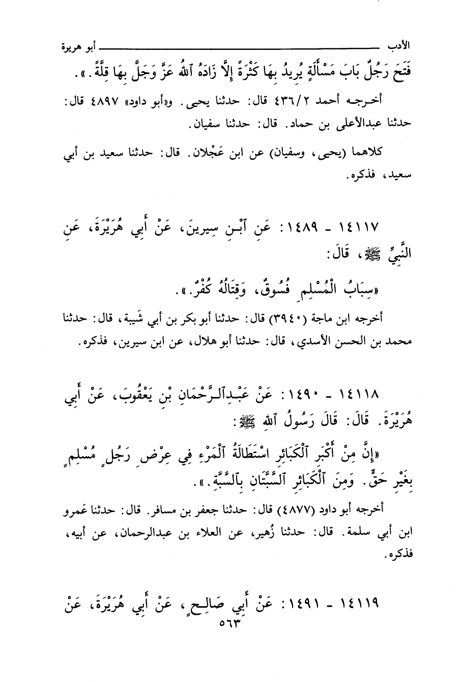 ١٤١١٨ - عَنْ عَبْدِ الرَّحْمَانِ بْنِ يَعْقُوبَ، عَنْ أَبِي هُرَيْرَةَ، قَالَ: قَالَ رَسُولُ اللهِ صلى الله عليه وسلم: