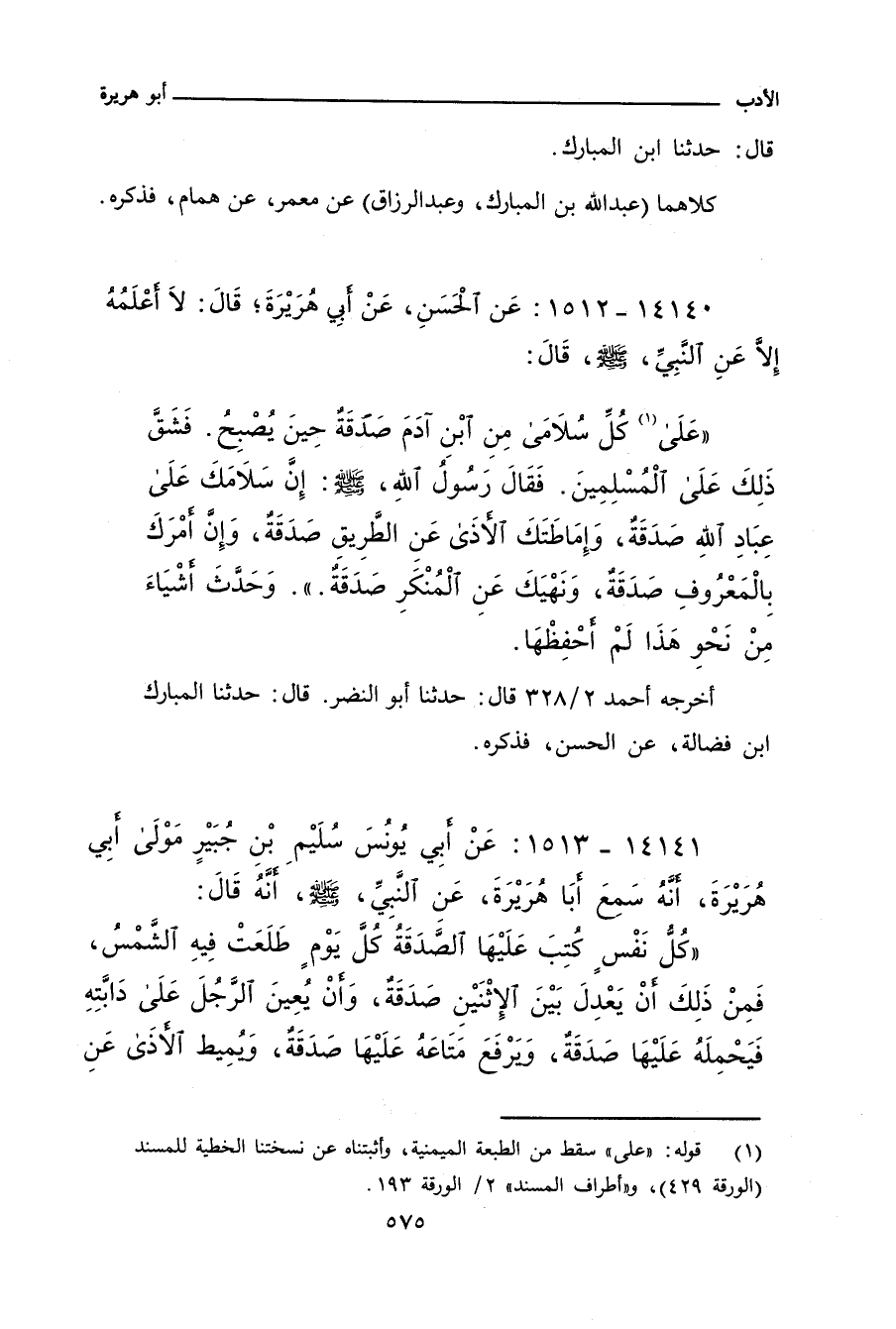 حدَّثنا ابن المبارك. و"ابن حِبَّان" ٤٧٢ قال: أخبرنا أبو يعلى، قال: حدَّثنا عبد الله بن محمد بن أسماء، قال: حدَّثنا ابن المبارك. وفي (٣٣٨١) قال: أخبرنا ابن قتيبة، قال: حدَّثنا ابن أبي السري، قال: حدَّثنا عبد الرزاق.