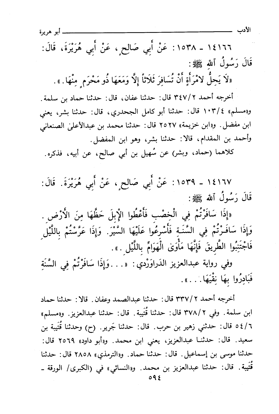 ١٤١٦٧ - عَنْ أَبِي صَالِحٍ، عَنْ أَبِي هُرَيْرَةَ، أَنَّ رَسُولَ اللهِ صلى الله عليه وسلم قَالَ: