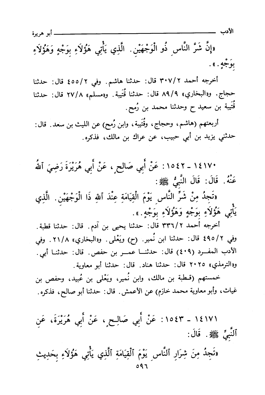 تَجِدُ مِنْ شَرِّ النَّاسِ عِنْدَ اللهِ ذَا الْوَجْهَيْنِ.