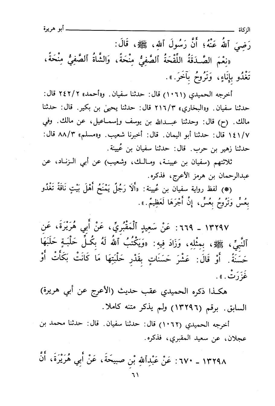 هكذا ذكره الحميدي عقب حديث الأعرج، عَنْ أَبِي هُرَيْرَةَ، السابق برقم (١٣٢٩٦) ولم يذكر متنه كاملاً.