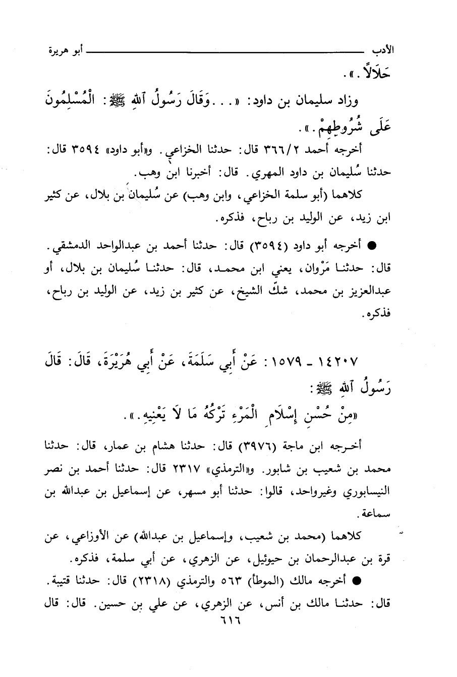 - وزاد سُلَيْمان بن داود: وَقَالَ رَسُولُ اللهِ صلى الله عليه وسلم: الْمُسْلِمُونَ عَلَى شُرُوطِهِمْ.