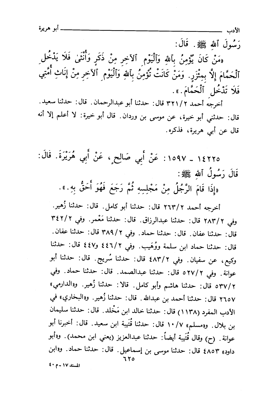 أخرجه عَبْد الرَّزَّاق (١٩٧٩٢) عن معمر. و"أحمد" ٢/ ٢٦٣ (٧٥٥٨) قال: حدَّثنا أبو كامل، حدَّثنا زُهير. وفي ٢/ ٢٨٣ (٧٧٩٧) قال: حدَّثنا عبد الرزاق، حدَّثنا مَعْمر. وفي ٢/ ٣٤٢ (٨٤٩٠) قال: حدَّثنا عفان، حدَّثنا حماد. وفي ٢/ ٣٨٩ (٩٠٣٥) قال: حدَّثنا عفان، حدَّثنا حماد بن سلمة، ووُهَيب. وفي ٢/ ٤٤٦ (٩٧٥٤) و ٢/ ٤٤٧ (٩٧٧٣) قال: حدَّثنا وكيع، عن سفيان. وفي ٢/ ٤٨٣ (١٠٢٦٩) قال: حدَّثنا سُريج، قال: حدَّثنا أبو عوانة. وفي ٢/ ٥٢٧ (١٠٨٣٥) قال: حدَّثنا عبد الصمد، حدَّثنا حماد. وفي ٢/ ٥٣٧ (١٠٩٥٥) قال: حدَّثنا هاشم، وأبو كامل، قالا: حدثنا زهير. و"الدارِمِي" ٢٦٥٤ قال: حدَّثنا أحمد بن عبد الله، حدَّثنا زُهير. و"البُخاري" في "الأدب المفرد" ١١٣٨ قال: حدَّثنا خالد بن مَخْلد، قال: حدَّثنا سليمان بن بلال. و"مسلم" ٥٧٤٠ قال: حدَّثنا قُتَيبة بن سعيد، أخبرنا أبو عوانة (ح) وقال قُتَيبة أيضًا: حدثنا عبد العزيز، يعني ابن محمد. و"أبو داود" ٤٨٥٣ قال: حدَّثنا موسى بن إسماعيل، حدَّثنا حماد. و"ابن
