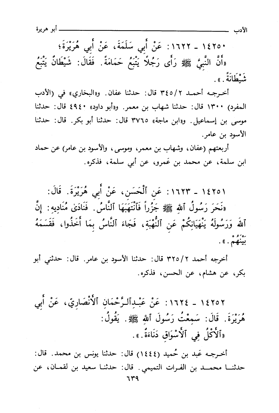 ١٤٢٥٢ - عَنْ عَبْدِ الرَّحْمَانِ الأَنْصَارِيِّ، عَنْ أَبِي هُرَيْرَةَ، سَمِعْتُ رَسُولَ اللهِ صلى الله عليه وسلم يَقُولُ: