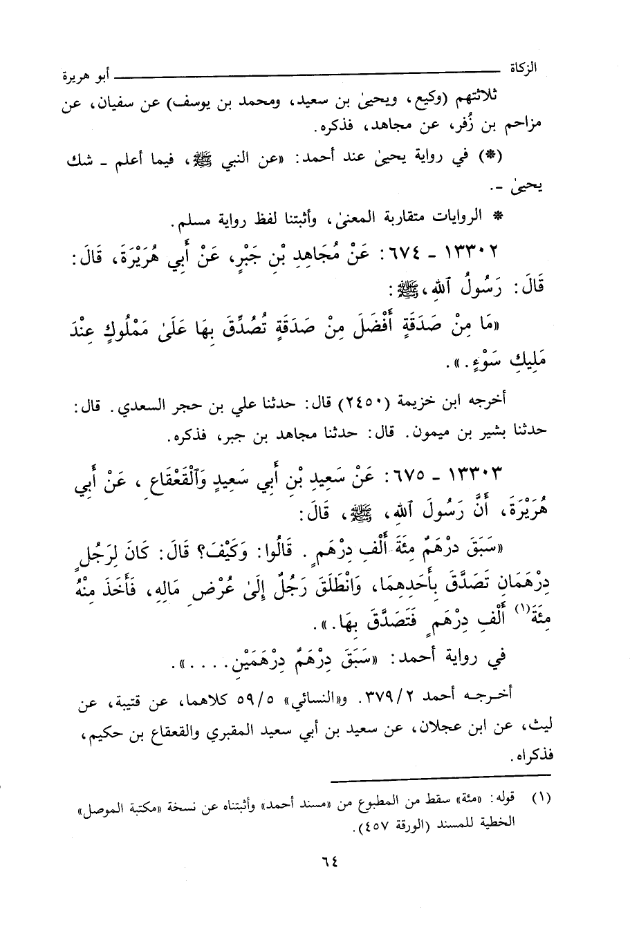١٣٣٠٣ - عَنْ سَعِيدٍ الْمَقْبُرِيِّ، وَالْقَعْقَاعِ بْنِ حَكِيمٍ، عَنْ أَبِي هُرَيْرَةَ، أَنَّ رَسُولَ اللهِ صلى الله عليه وسلم قَالَ:
