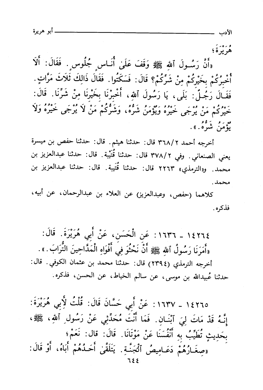 - قال أبو عِيسَى التِّرْمِذِي: هذا حديثٌ غريبٌ من حديث أبي هُرَيْرة.