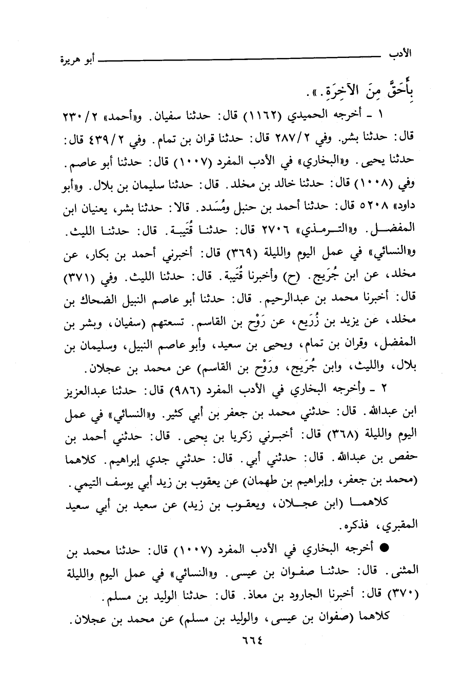 أخرجه الحميدي (١١٦٢) قال: حدَّثنا سفيان، قال: حدَّثنا ابن عَجْلان. و"أحمد" ٢/ ٢٣٠ (٧١٤٢) قال: حدَّثنا بشر، عن ابن عَجْلان. وفي ٢/ ٢٨٧ (٧٨٣٩) قال: حدَّثنا قُرَّان بن تَمَّام، عن مُحَمد بن عَجْلان. وفي ٢/ ٤٣٩ (٩٦٦٢) قال: حدَّثنا يحيى، عن ابن عَجْلان. و"البُخاري" في "الأدب المفرد" ٩٨٦ قال: حدَّثنا عبد العزيز بن عبد الله، قال: حدثني محمد بن جعفر بن أبي كثير، عن يعقوب بن زيد التيمي. وفي (١٠٠٧) قال: حدَّثنا أبو عاصم، عن ابن عَجْلان. وفي (١٠٠٨) قال: حدَّثنا خالد بن مخلد، قال: حدَّثنا سليمان بن بلال، قال: حدَّثني مُحَمد بن عَجْلان. و"أبو داود" ٥٢٠٨ قال: حدَّثنا أحمد بن حنبل، ومُسَدَّد، قالا: حدثنا بشر، يعنيان ابن المفضل، عن ابن عَجْلان. و"التِّرمِذي" ٢٧٠٦ قال: حدَّثنا قُتَيبة، حدَّثنا الليث، عن ابن عَجْلان. و"النَّسائي" في "الكبرى" ١٠١٢٨ قال: أخبرني زكريا بن يحيى، حدثني أحمد بن حفص بن عبد الله، حدثني أبي، حدثني جدي إبراهيم، قال: حدَّثني يعقوب بن زيد، أبو يوسف. وفي (١٠١٢٩) قال: أخبرني أحمد بن بكار، عن مخلد، عن ابن جُرَيْج، قال: أخبرني مُحَمد بن عَجْلان (ح) وأخبرنا قُتَيبة، قال: حدَّثنا الليث، عن ابن عَجْلان. وفي (١٠١٣١) قال: أخبرنا محمد بن عبد الرحيم، قال: حدَّثنا أبو عاصم النبيل، الضحاك بن مخلد، عن يزيد بن زُرَيع، عن رَوْح بن القاسم، عن ابن عَجْلان. و"أبو يَعْلَى" ٦٥٦٧ قال: حدَّثنا سَهْل، حدَّثنا القَطَّان، عن ابن عَجْلان. و"ابن حِبَّان" ٤٩٣ قال: أخبرنا عُمَر بن مُحَمد الهَمَذَانِي، قال: حدَّثنا مُحَمد بن إسماعيل البُخَارِي، قال: حدَّثنا عَبْد العزيز بن عَبْد الله الأُوَيْسِي، قال: حدَّثنا مُحَمد بن جَعْفَر، يَعْنِي ابن أبي كثير، عن يَعْقُوب بن زَيْد التَّيْمِي. وفي (٤٩٤) قال: أخبرنا ابن قُتَيْبَة، حدَّثنا