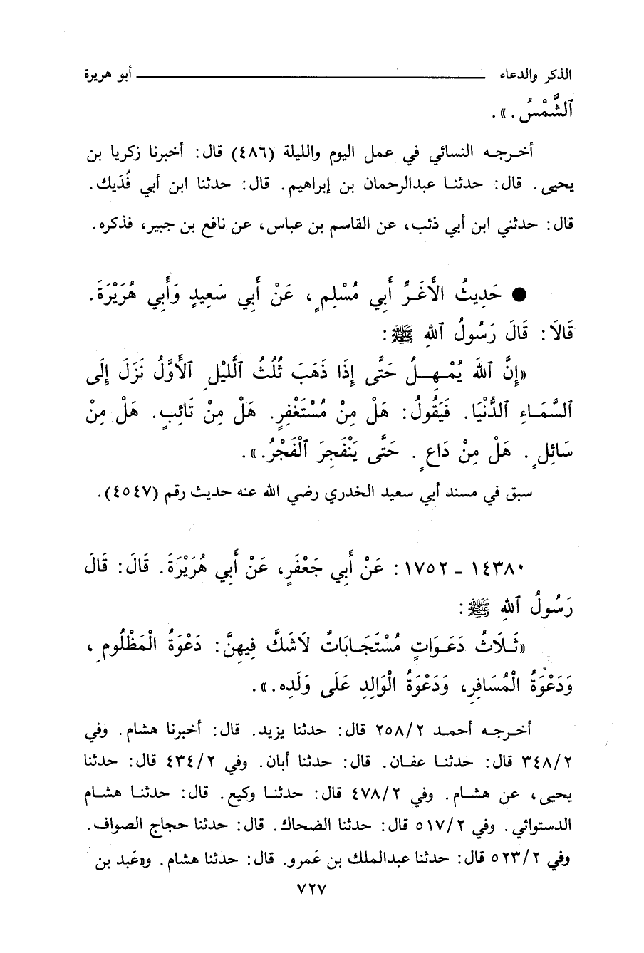 - وفي رواية: ثَلَاثُ دَعَوَاتٍ مُسْتَجَابَاتٌ لَهُنَّ لَا شَكَّ فِيهِنَّ: دَعْوَةُ الْمَظْلُومِ، وَدَعْوَةُ الْمُسَافِرِ، وَدَعْوَةُ الْوَالِدِين عَلَى وَلَدِهِما.